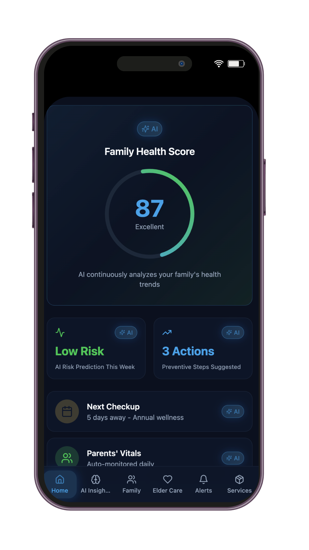 Current systems treat individuals in isolation. Families need connected health insights what affects one, affects all.