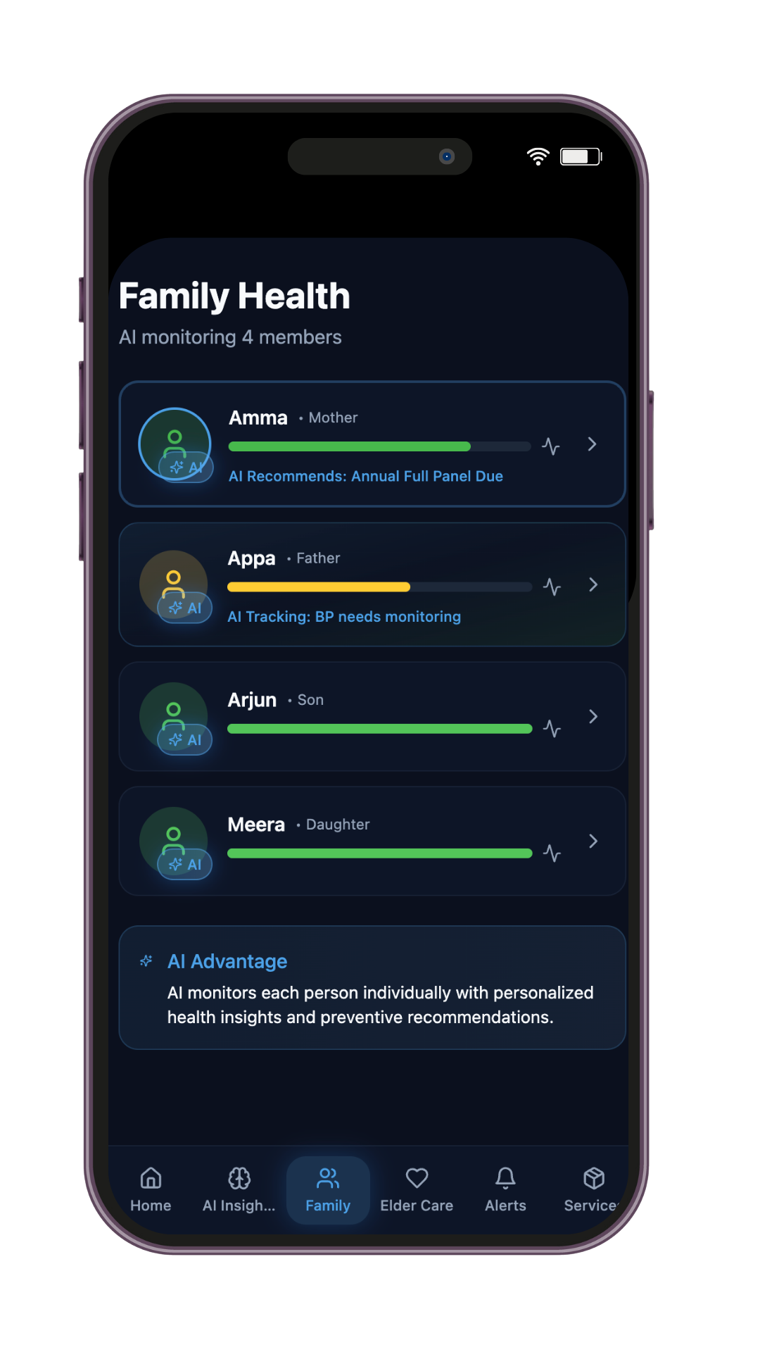 Track all family members in one place. Understand health patterns that connect across the household.