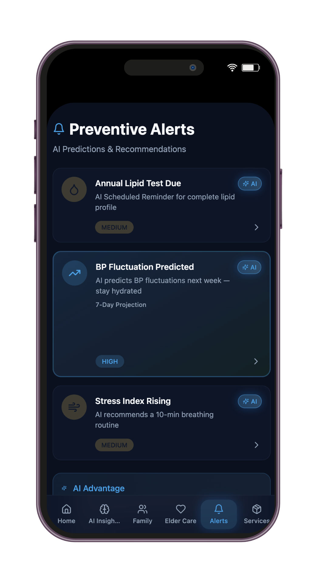 Receive AI-powered lifestyle suggestions, preventive care reminders, and early risk detection alerts tailored to your family's unique health profile.